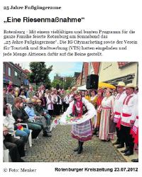 Rotenburger Kreiszeitung - Eine Riesenmaßnahme Mit einem vielfältigen und bunten Programm für die ganze Familie feierte Rotenburg am Sonnabend das Jubiläum "25 Jahre Fußgängerzone". Die IG Citymarketing sowie der Verein für Touristik und Stadtwerbung (VTS) hatten eingeladen und jede Menge Aktionen dafür auf die Beine gestellt...