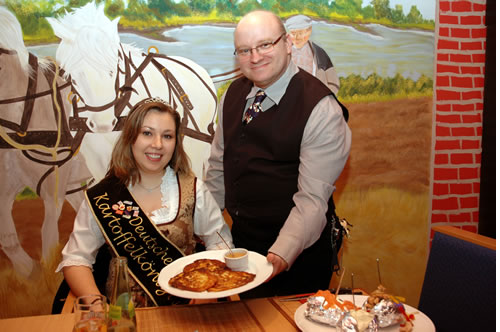 Nun hat auch Rotenburg sein Kartoffelrestaurant. Und der Name "Kartoffelkeller" passt wie die Faust aufs Auge. Iris Eickhoff und Andreas Hertel haben in die Hände gespuckt und im Bowling-Center im Stadthaus ein urgemütliches Restaurant eingebaut. Hier gibt es nun unzählige Gerichte rund um den Erdapfel. Zur Eröffnung war Kartoffelkönigin Marina mit dem 1. Vorsitzenden des VTS Hartmut Peterek zur Verkostung gekommen. Einstimmiges Urteil: "Echt lecker!" Besonders geeignet ist der abtrennte Bereich natürlich für Gesellschaften und Gruppen und bestellt werden kann, was Lust und Freude macht.